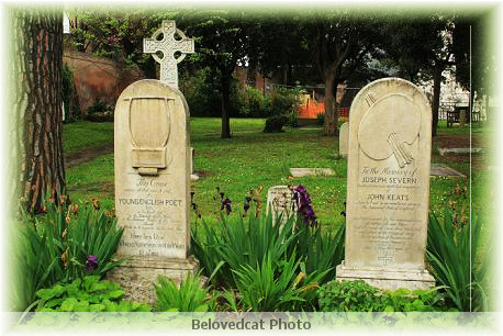 C.S.Lewis说:“朋友的爱是天使的爱”。Joseph Severn就是济慈的天使。年长济慈三岁的Joseph Severn不但是画家,英国驻意大利的文化大使,更是济慈忠实的朋友和随行“仆人”。在罗马,是他一直在济慈的病床前悉心照料,忠心服侍,直到诗人在他天使的怀抱中安睡。后来,Joseph Severn襁褓中的儿子陪济慈安睡在这里(中间的小墓碑)。济慈安息57年以后,85岁的Joseph Severn也陪同他永远的朋友葬在这里,并在墓碑上写下他是不朽诗人济慈的“devoted friend"和"death-bed companion".