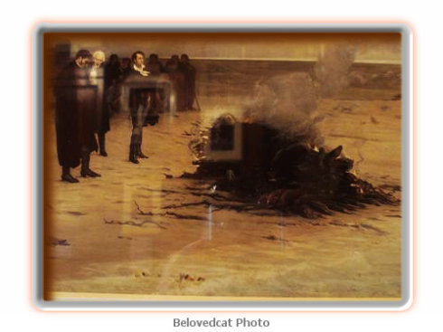 1822年7月8日,不满30岁的 雪莱溺海而死。他的身体在海边被亲友点燃,他的爱妻Mary Shelley跪在火光中,陪伴雪莱完成了地上生也浪漫,死也浪漫的旅程,用祷告陪伴诗人进入天上的浪漫。我凝视着火光里的雪莱,仿佛看见雪莱正向我昭示着天堂里那种永远的浪漫和安宁。