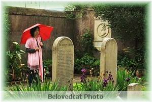 我沉思:济慈没有名字的墓碑和他口授的碑文"Here lies one whose name was writ in Water"。