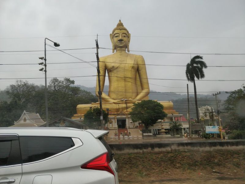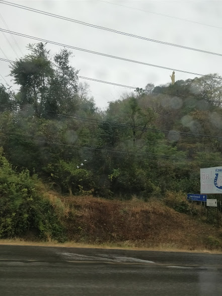 道路边时而能见佛像,很高大的佛像。有时山上的佛像也隐约可见。偶尔拍了几张照片。