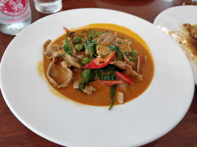 有一大碗汤,里面是绿色的小圆豆似的咚咚,比豌豆大一些。居然是一种泰国茄子。可惜只顾着吃,没拍照。