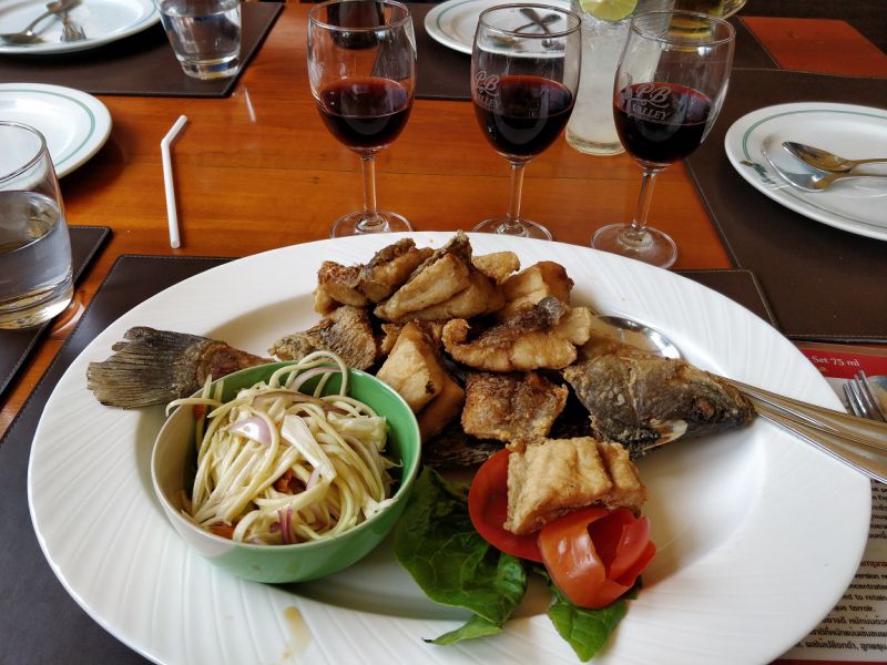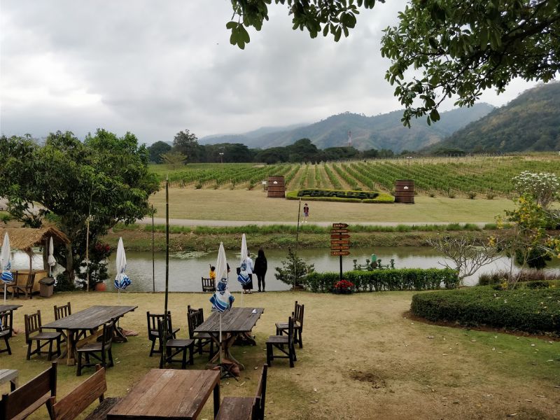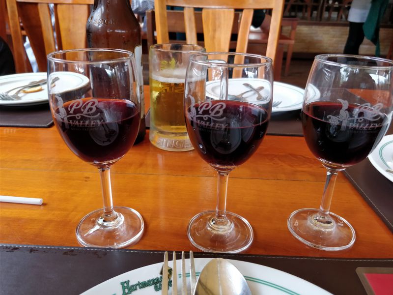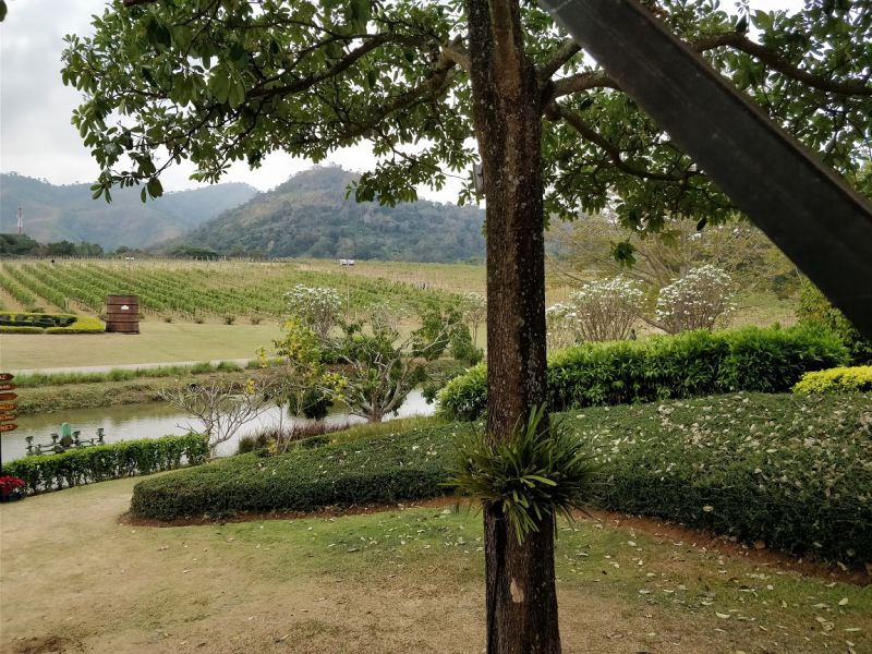 路上萨咖伊兄介绍(他行前寄给我们的阅读材料也有提到):“泰国的葡萄酒行业还很年轻。最早几年,(喝)葡萄酒跟喝醋似的。呵呵呵呵呵。。。”