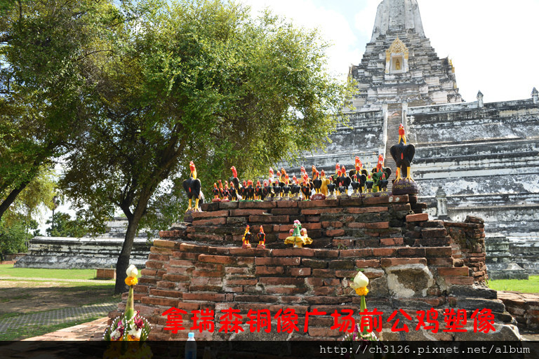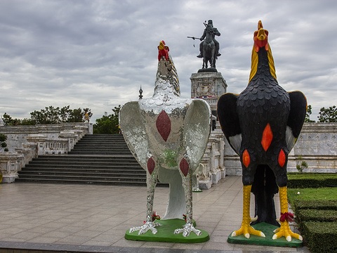 萨咖伊:“这是纪念拿瑞森王的。传说拿瑞森王和缅甸王打赌斗鸡。如果斗鸡赢了,缅甸不侵犯泰国。”