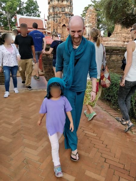 萨咖伊把车停在大路边。我们手拉手过马路,来到玛哈泰寺。