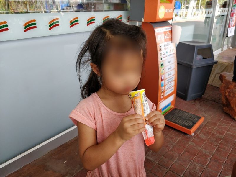 终于看到一间小冰店。孙女、孙子吃雪糕,我们要各式冰奶茶。奶茶价钱比曼谷便宜多了,但更甜。小阿立嫂说回曼谷再去喝好点的奶茶。我们勉强喝冰甜茶,消消暑。