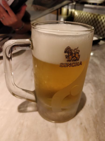 味道好极啦,也真够辣。泰式海鲜的汤本来蛮好喝,不怕辣的话。阿立杭州人,喜欢辣看来是叶公好龙:只喝一小口,辣的不行了。冰镇啤酒猛喝。