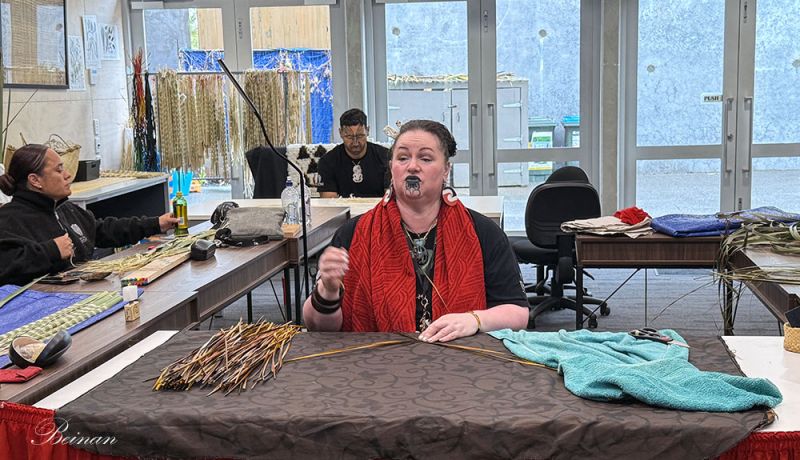 编织在毛利文化中与木雕一样重要,被称为Raranga。它不仅是生活用品的制作技艺,更是一种承载祖先智慧、自然观和身份认同的艺术。毛利人相信,编织技巧最早来自女神 Hine-te-iwaiwa,她被视为编织、分娩与女性力量的守护者。