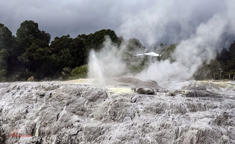 进入地热保护区,到处喷发着蒸汽,烟雾蒙蒙,好像来到仙境。