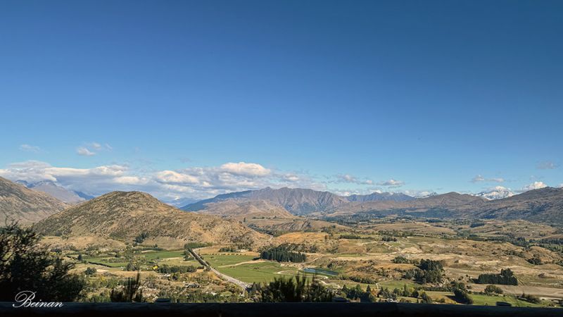 离开瓦卡蒂普湖,在前往箭镇的方向,我们看到的又是另一番景象。这里没有蓝色的湖泊,取而代之的是连绵的群山与敞开的山谷。