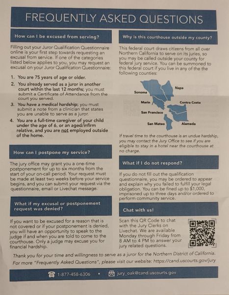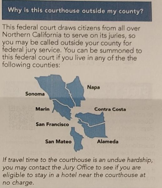 上集写的是2024年9月下旬,收到联邦法院北加州地区法院的‘陪审员应召通知’(Summons For Jury Service)。