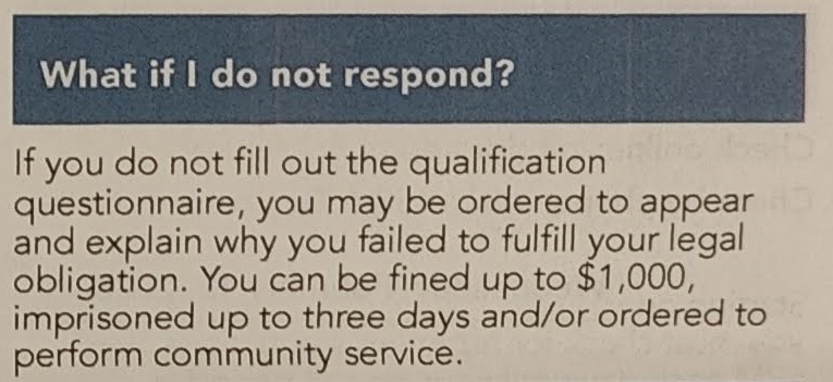 我们遵纪守法,即使没有歪瓜裂枣的惩罚,照样老老实实上法院官网,及时填写了《陪审员资格调查问卷》(Juror Qualification Questionnaire)。