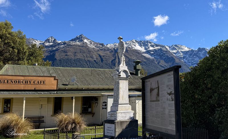 小镇的咖啡店前,矗立着一座格伦诺基战争纪念碑(Glenorchy War Memorial)。这是为了纪念在第一次世界大战中牺牲的25名当地烈士,于1924年3月28日由时任总督Lord Jellicoe揭幕,至今也有101年了。