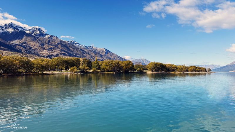 这是这个新西兰第三大湖的最北端尽头,湖面在这里收窄,被群山环抱,形成一个宁静的港湾。