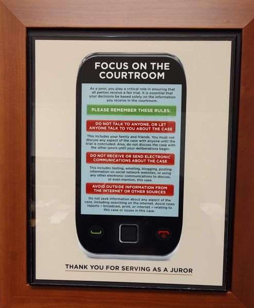 墙上挂着陪审员注意事项(Focus on the Courtroom):