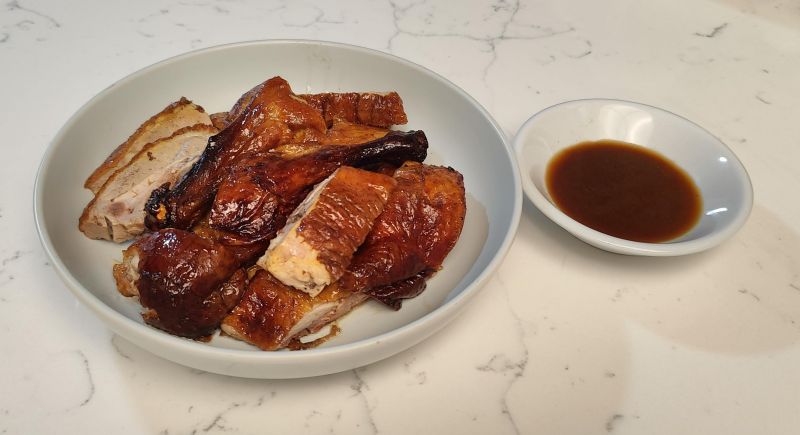行前咨询金色加州兄:“富兴中心停车场交费处的旁边,有一个烧腊铺。记得有一次在那儿买了叉烧,很合我的口味。”