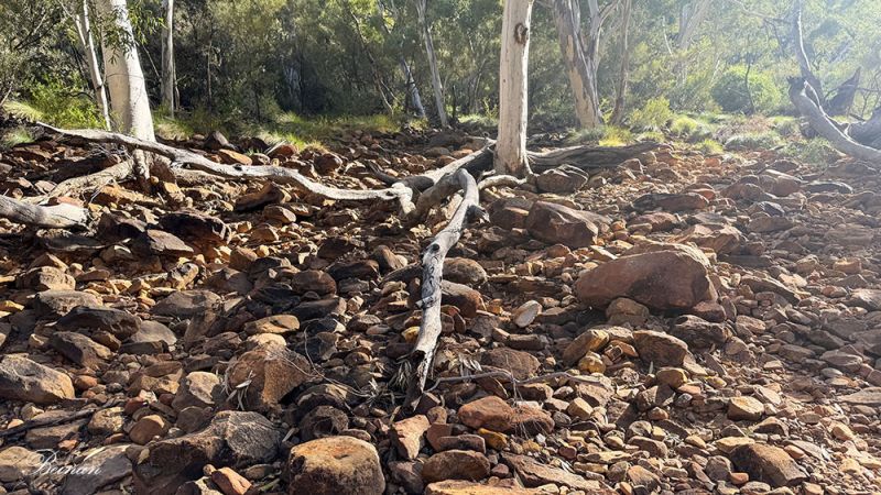 原以为,在峡谷底沿溪流穿行,一定会很惬意。没想到,小溪已经干涸,只能看见溪底的碎石。
