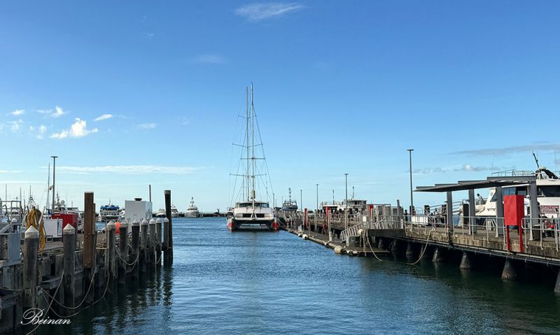 清早,来到凯恩斯港口(Cairns Marlin Marina)。这里是凯恩斯的海上门户,几乎所有前往外海珊瑚礁的观光船都从这里出发。所以港口很是拥挤热闹。