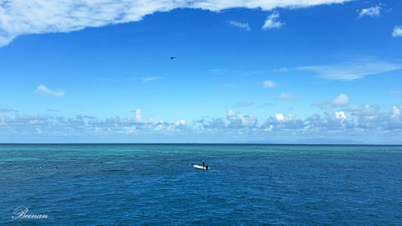 大堡礁的海,就像天空映在水里的万花筒。海色在阳光下呈现出明显的层次,浅浅的翠蓝,像玻璃;深一些的湛蓝,像宝石;更深沉的钴蓝,浓得像要吞没一切……