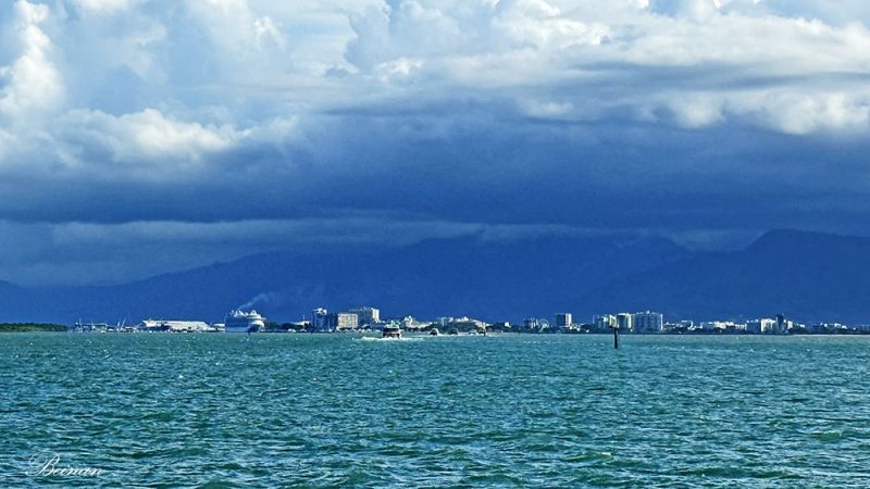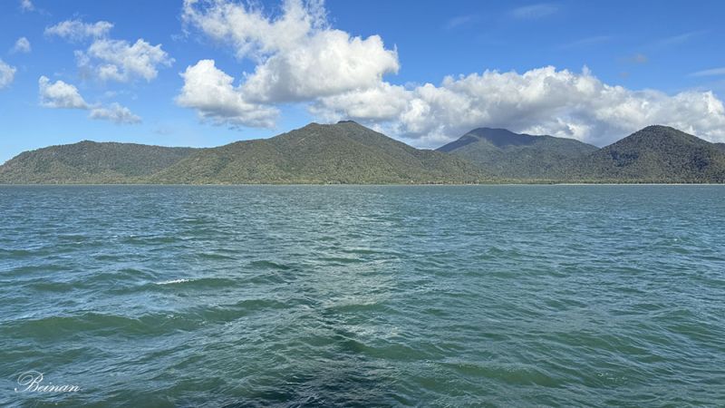 渐渐地,远方出现了一条淡淡的影子。最初只是天与海之间的一抹深绿色,随后那影子越来越清晰,那是凯恩斯背后的山。那些山像巨大的屏障一样矗立在城市背后,给人一种被热带大地拥抱着的感觉。