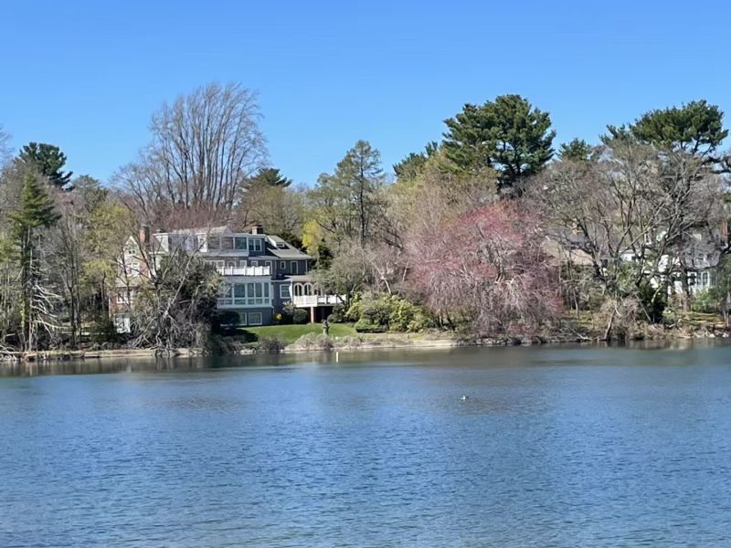 环湖皆画栋,雕梁上千重 新柳拂碧波,玉兰繁花容 鹂鸟呜婉转,野鹅觅青虫 白桥映绿亭,树丛隐渔翁 但等盛夏至,戏水男女众