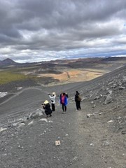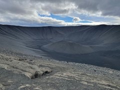 惠尔山火山步道(Hverfjall Volcano Trail):湖边有平坦的步道,到火山步道需要走一段石子路,停车场不小。惠尔山火山口高396米(1300英尺),是一座火山灰爆发形成的火山口。它位于米湖东岸附近。形似一个巨大的黑色火山灰锥,沿着陡峭的山坡攀爬,环绕火山口边缘可以俯瞰火山口,并远眺周围令人叹为观止的壮丽景色。