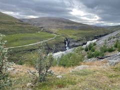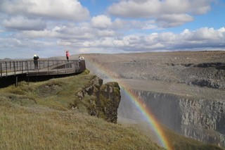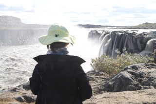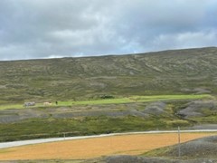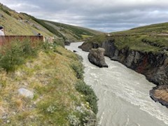 玄武岩峡谷 (Stuðlagil Canyon):临近峡谷,山青青,水碧碧,车子在山路上辗转,融和在青山绿水间。停车场很大,沿着数百台阶下去上来,即无法下到谷底,也无法到对面去走步道,反复看来看去也没搞明白怎么到对面去。对面的步道上游客不少,远处似有个不大的停车场。