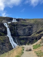 Rjúkandi Waterfall:Rjukandi 瀑布是冰岛最高的瀑布之一,离公路不远,从公路上也可以观赏,但近距离才是体验其壮丽美景的最佳方式。Rjukandi 瀑布的名字源于冰岛语“rjuka”,意为“蒸汽或吹散”。瀑布水流湍急,形成了大量雾气,看起来像烟雾。瀑布看起来像是倒着似的。