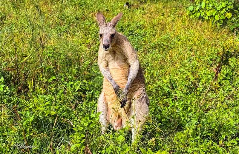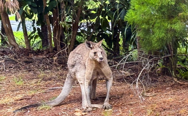 刚走不远,就看到了路边的一只大袋鼠。导游告诉我们,这是东部灰袋鼠(Eastern Grey Kangaroo),是澳大利亚最常见、最容易亲眼看到的大型袋鼠之一。