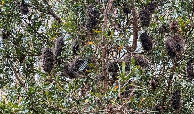 导游看我对下面这棵树感兴趣,告诉我,这是班克西亚树(Banksia tree)。后来查到,中文叫瓶刷树,因为它的花序呈圆柱形或棒状,形状像清洁用的瓶刷。这是澳大利亚特有的植物。