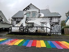 邻近欧洲大陆的关系,镇上拥有不少挪威风格的木制房屋,色彩缤纷的建筑也是特色之一,美丽的蓝色城镇教堂(blue church)前,以彩虹街(哈夫纳加塔)步道而闻名,这是一个充满活力的社区艺术项目,包括在街道上绘制彩虹,彩虹步道象征着该镇的创造力和热情好客的氛围。这条色彩缤纷的小路通往标志性的蓝色教堂,淡蓝色在微风细雨中安详地接受游人的注目礼。