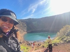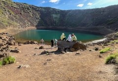 凯瑞斯火山口或凯瑞斯火口湖(Kerid Crater) 是冰岛南部火山地貌的代表,以其鲜艳的红色岩坡和蓝绿色的湖水而闻名,是冰岛“黄金圈”旅游路线上的一个热门景点。距离塞里雅兰瀑布一个小时,提车后买票,可以沿着步道绕火山口一圈,风不小,游人兴致不减。