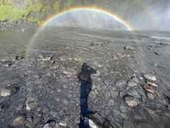 斯科加瀑布位于平原之上,水幕宽阔,瀑流激荡,激起迷蒙的水雾在阳光下升起的彩虹乃至双彩虹给人不凡的视觉享受,天随人愿,倒影也超乎想象的美妙。苹果没能完美捕捉那个圆满的瞬间,微风袭来,涟漪中彩虹的倒影随之破碎。