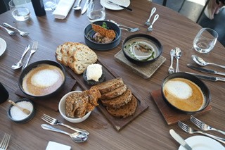 面包,蘑菇汤,鸡肝。