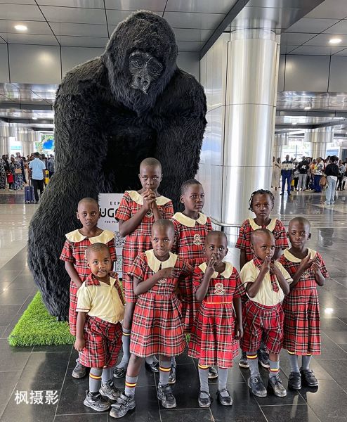 机场大厅里,有一座大猩猩(Gorilla)塑像。正好看见一群小学生在塑像前拍照,好像是一群小可爱在欢迎我们。