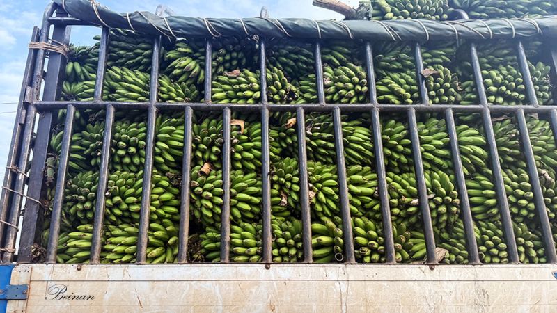 我们还看到一辆辆装满青香蕉的卡车,有幸用手机抓住这一景。