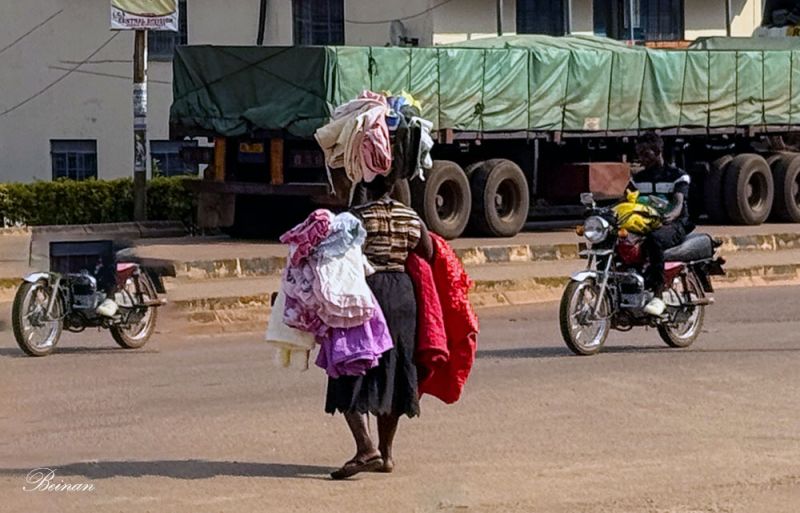 乌干达妇女头顶重物的本事很令人惊叹。