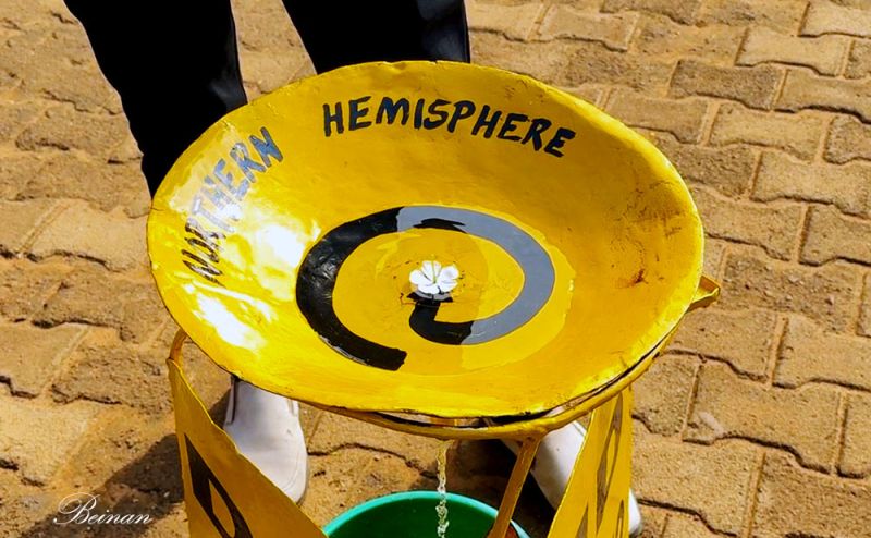 在赤道线以南,也就是南半球(Southern Hemisphere),水流逆时针旋转。