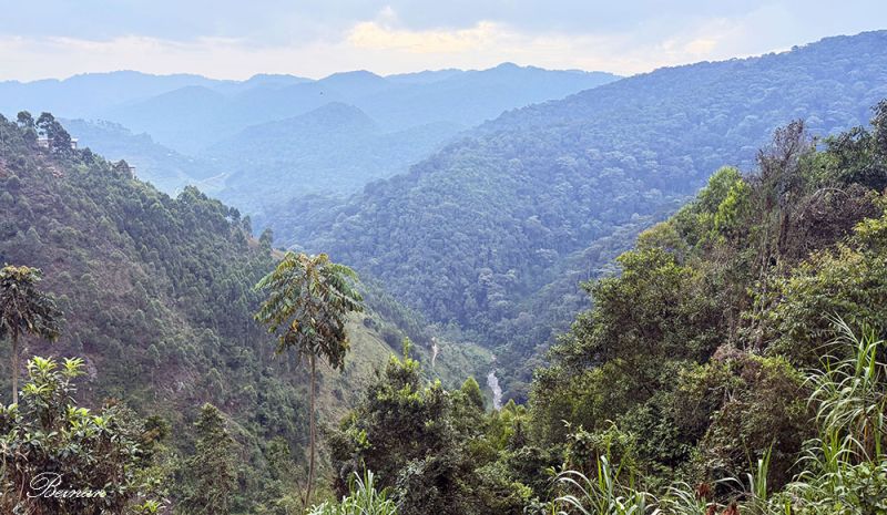 这里没有城市的轮廓,只有层层青山,莽莽密林,和山林间的薄雾。站在这里,一下子忘记了长途跋涉的疲惫,幻想着明天追逐大猩猩的乐趣。