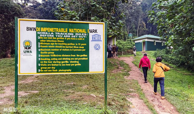 每一个参加追踪大猩猩的游客都要参加大猩猩追踪的行前说明会(Briefing),了解分组、路线安排及与大猩猩接触的行为规范。