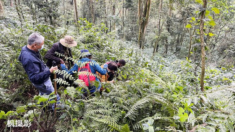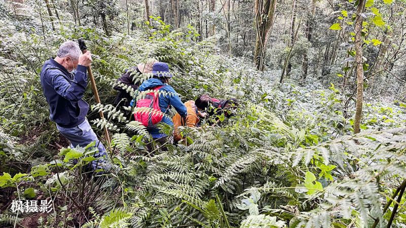车子停到了没有道路的地方,我们必须下来走路啦。山路并不是太陡,可是这小小的土坡,已经让老太气喘吁吁了。多亏导游给了每人一根木棍,才使行进略微容易些。