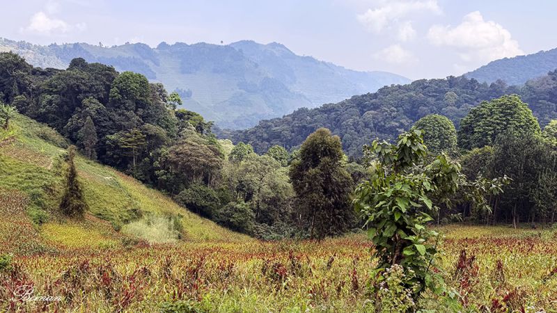 车子在布恩迪公园颠簸曲折的土路上行驶,我们得以再次观赏这里的美景。近处是一片高粱地,这是当地人用来酿酒的原料。远处是连绵的青山,彰显着一种狂野的美。