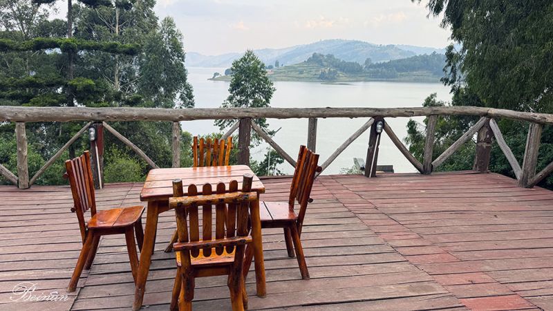 在露天餐厅可以俯瞰美丽的布尼奥尼湖(Lake Bunyonyi)。这是乌干达西南部著名的高原湖泊,湖中有29个小岛。