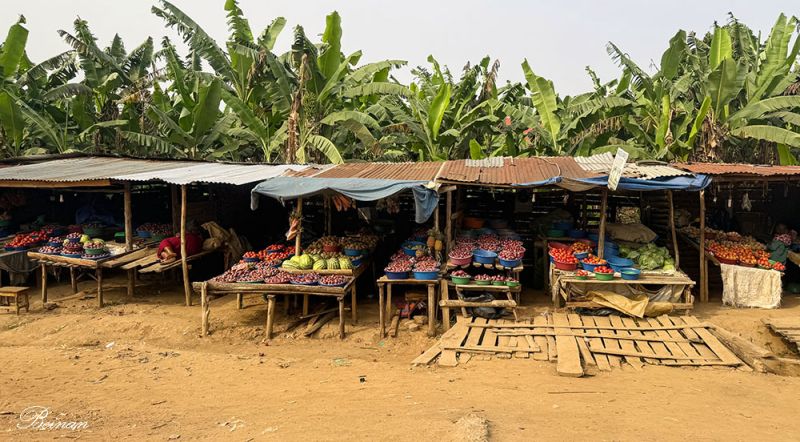 车子驶上了乌干达的国道。我们看到的是另一番景象。在国道两边有很多城镇和村庄。每路过一个城镇或村庄就会看到乱糟糟的市场,好像商业中心都建在国道两边。