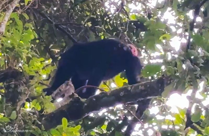 卡林祖森林保护区大约有320多只黑猩猩生活在原始森林中,其中约40–50 只已经习惯人类存在。我们看到的这些可能就是已经习惯人类的黑猩猩吧。