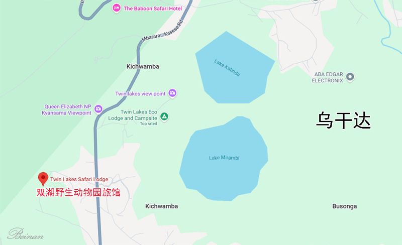 想起我们头两天住在伊丽莎白女王国家公园的双湖野生动物园旅馆(Twin Lakes Safari Lodge)的经历。这个旅馆的附近有两个小湖,所以叫双湖。