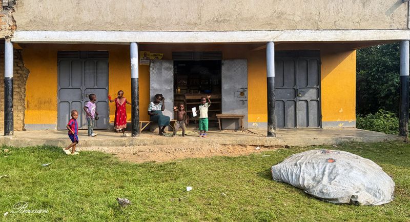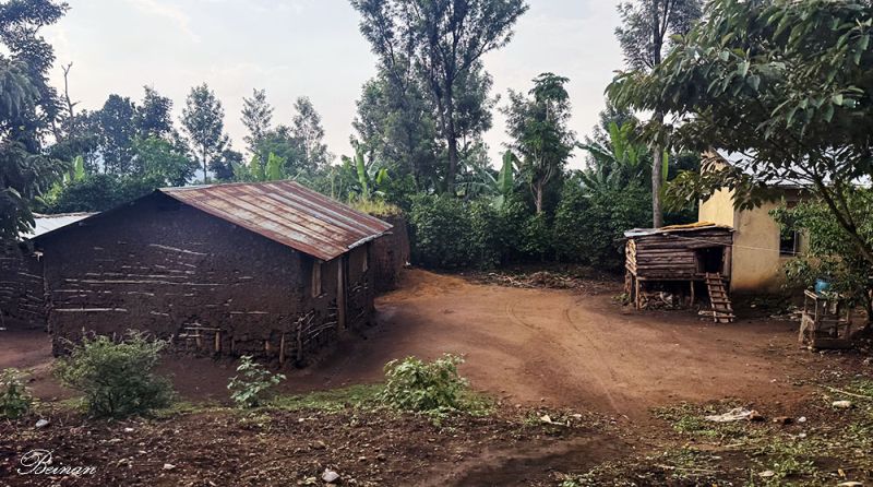 但是在回旅馆的途中,我们也看到了真实的乌干达乡村。在绿葱葱的椰林后边,是铁皮屋顶的破屋。乍一看,还以为是废弃的房子。