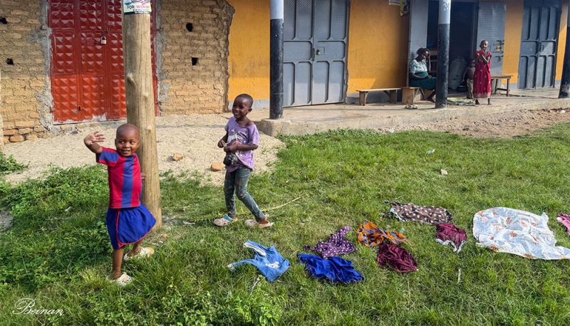 仔细看,草地上铺着孩子的衣服,好像是洗过后在草地上晾干。我不止一次看到这样的情景了。不知这是他们的生活方式,还是对土地的理念,或是无奈之举?