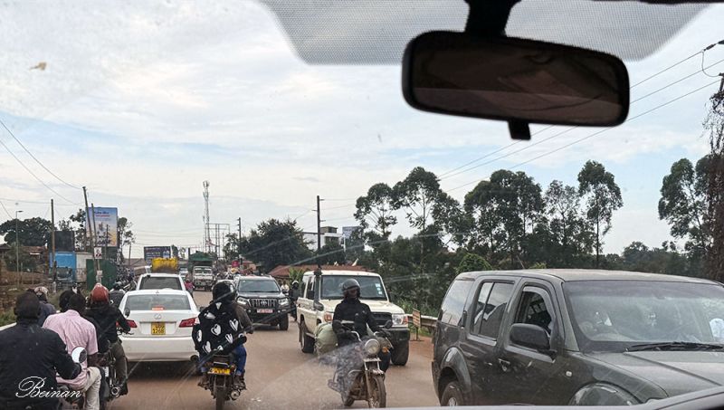 车子在拥挤的国道上走走停停,黄昏时刻,才到乌干达首都坎帕拉(Kampala)城市边缘。因为堵车,我们错过了一个景点。司机说,看看明天有时间再去吧。结果第二天还是堵车,只好放弃。