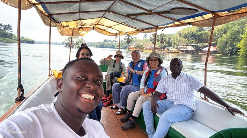 登上等候我们的小船,在维多利亚湖上驶向尼罗河源头。船上的导游有个中国朋友,会说几句中文,还特别喜欢用手机自拍。另一位是和我们相处了几天的全程导游兼司机埃迪。