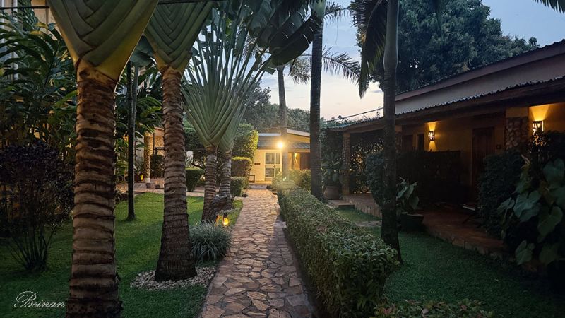 房间很宽大,还有一个厨房。不过我们倒不用自己做饭,在这里吃的午饭和晚饭是我们在乌干达吃的最可口的两顿饭。因为旅馆没有厨房,而是提供菜谱,我们订餐,由外面的餐馆送来。可惜没有中国餐馆,不过日本餐馆的米饭也让老太的中国胃很舒服。